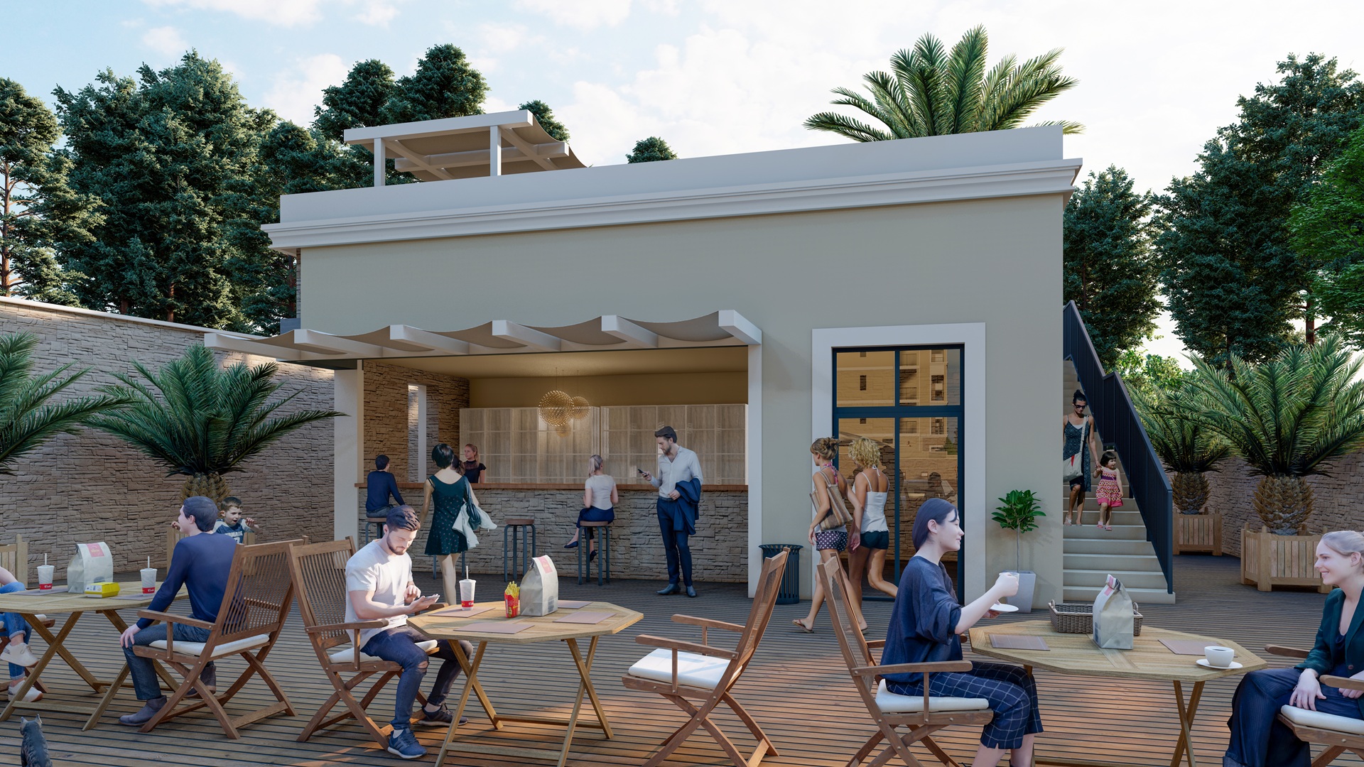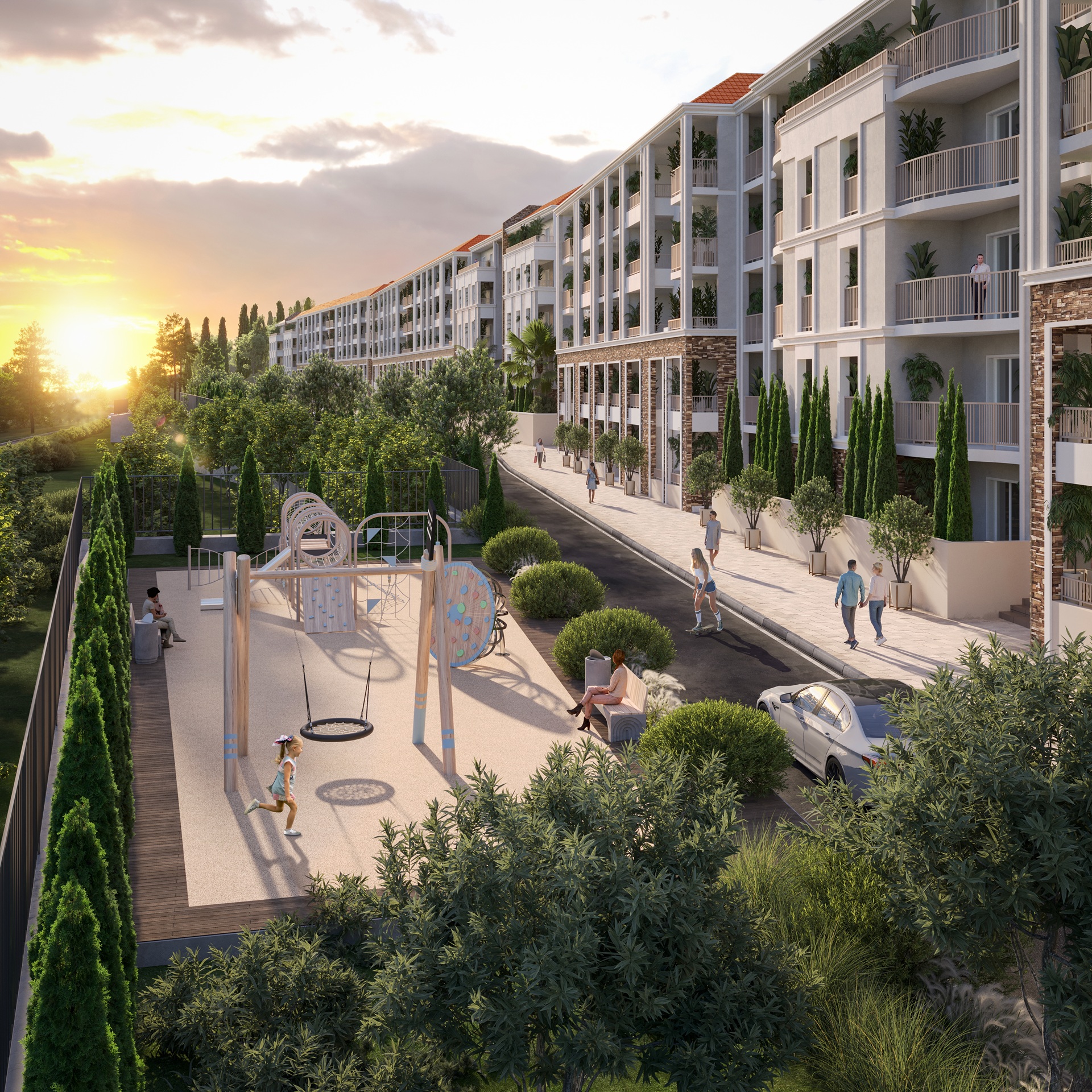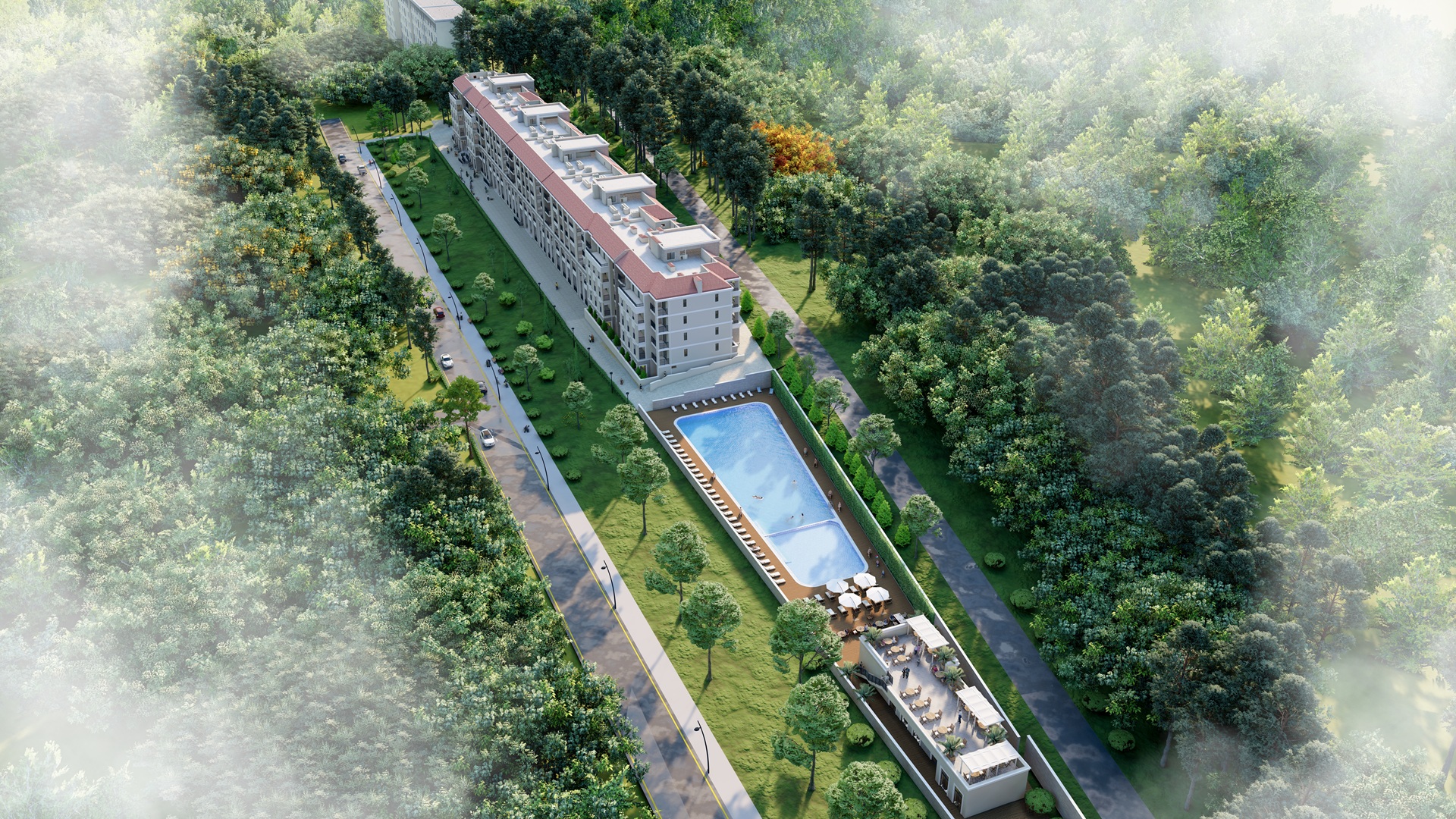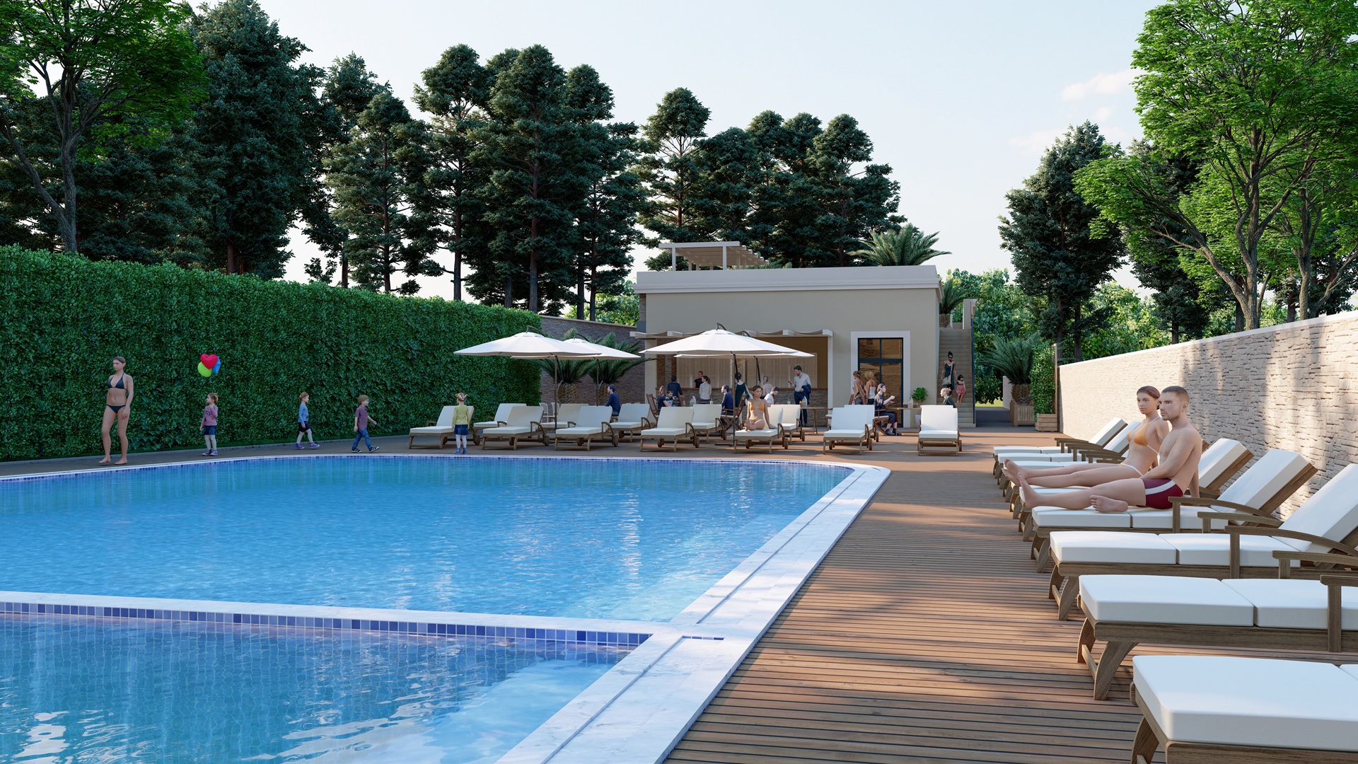 На территории комплекса расположены закрытые и открытые бассейны, спортивные площадки для игры в теннис и другие виды спорта. Также предусмотрены детские площадки с безопасным оборудованием.